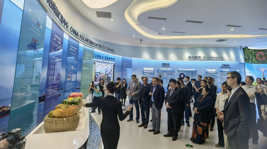 在中新物流園,使節團通過(guò)參觀(guān)展廳、聽(tīng)取介紹、互動(dòng)交流等方式詳細了解園區的發(fā)展情況,對西部陸海新通道的戰略地位與廣西在其中的作用有了更深的認識。中新物流園是廣西參與“一帶一路”及推進(jìn)中國與新加坡互聯(lián)互通、西部陸海新通道建設、海洋經(jīng)濟發(fā)展的重大項目之一,自2018年10月開(kāi)工建設以來(lái),園區發(fā)展迅猛,產(chǎn)業(yè)集聚效應加速顯現,現已引進(jìn)超30家世界500強和中國100強龍頭企業(yè)進(jìn)行合作,共同實(shí)施項目建設與運營(yíng)。
