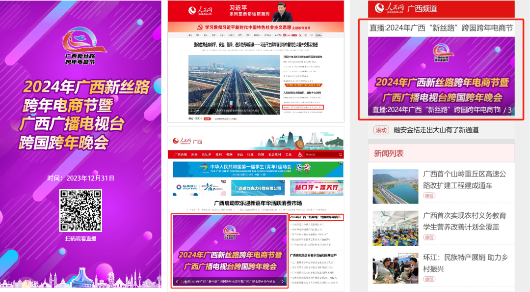 網(wǎng)羅八桂優(yōu)品、東盟好物,共赴e場(chǎng)消費盛宴。由廣西壯族自治區商務(wù)廳聯(lián)合南寧市人民政府,聯(lián)動(dòng)越南、柬埔寨、泰國、老撾、緬甸、馬來(lái)西亞駐南寧總領(lǐng)事館共同舉辦的2024年廣西新絲路跨年電商節暨廣西廣播電視臺跨國跨年晚會(huì )在國內主會(huì )場(chǎng)廣西南寧市中國—東盟特色商品匯聚中心(以下簡(jiǎn)稱(chēng)“匯聚中心”)、海外分會(huì )場(chǎng)老撾萬(wàn)象國家文化宮同步精彩啟幕。