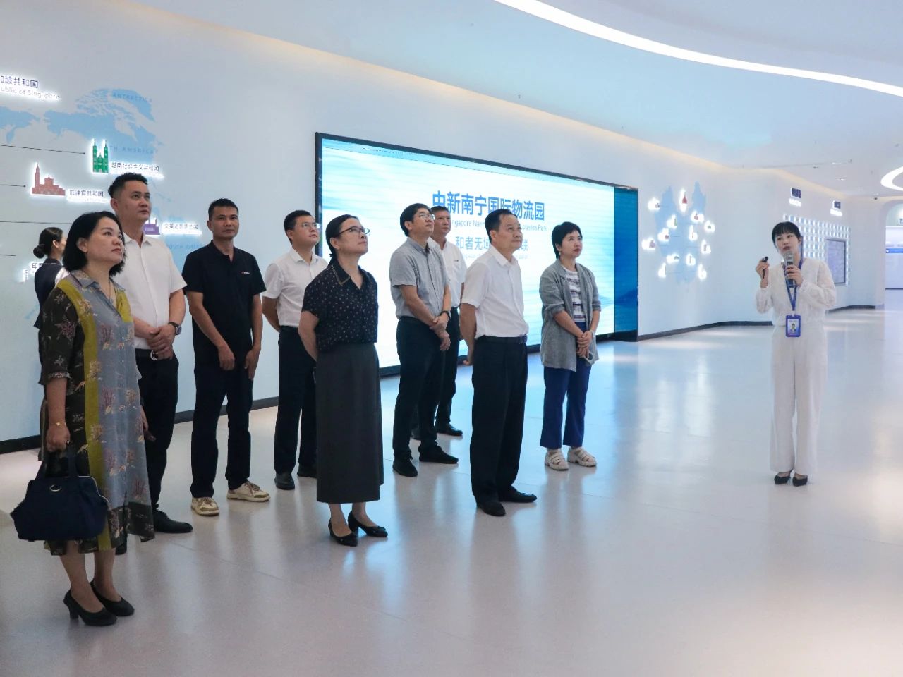 在中新物流園展示中心,調研組深入了解項目的整體建設和運營(yíng)情況。目前,園區已引進(jìn)超30家世界500強和中國100強龍頭企業(yè)進(jìn)行合作后,調研組認為:中新物流園短時(shí)間內便發(fā)展成如此規模,實(shí)屬難得,充分體現了園區在高水平共建國際陸海貿易新通道及“一帶一路”建設中起到的作用。