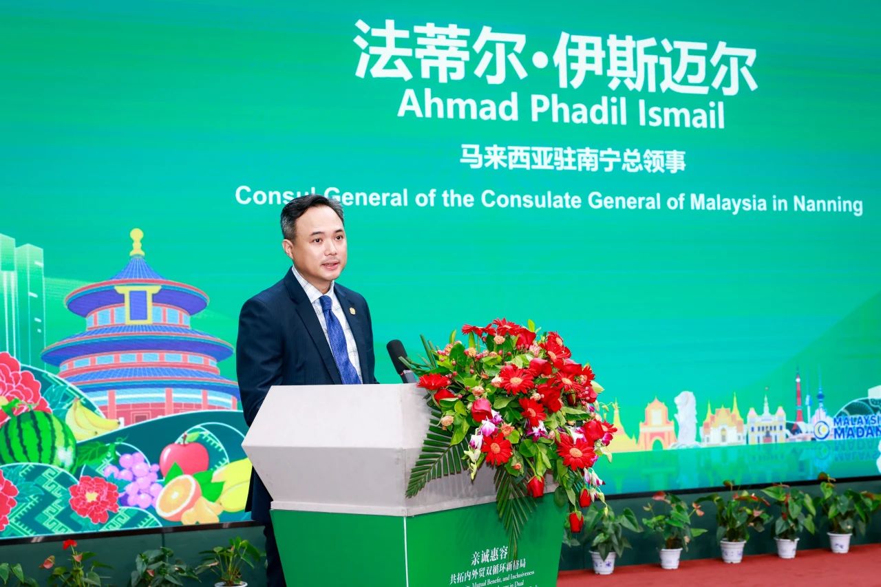 朱雁玲在致辭中表示,馬來(lái)西亞是中國—東盟水果貿易的重要樞紐,同時(shí)在推動(dòng)全球清真產(chǎn)業(yè)發(fā)展中發(fā)揮著(zhù)重要作用。匯聚中心既是經(jīng)貿合作的交流平臺,也是文化互動(dòng)的“會(huì )客廳”,我們與匯聚中心聯(lián)合舉辦此次活動(dòng),旨在助力暢通廣西企業(yè)與東盟特別是馬來(lái)西亞市場(chǎng)之間的經(jīng)貿通道,讓更多“廣西優(yōu)質(zhì)好物”與“馬來(lái)特色商品”互通有無(wú)。