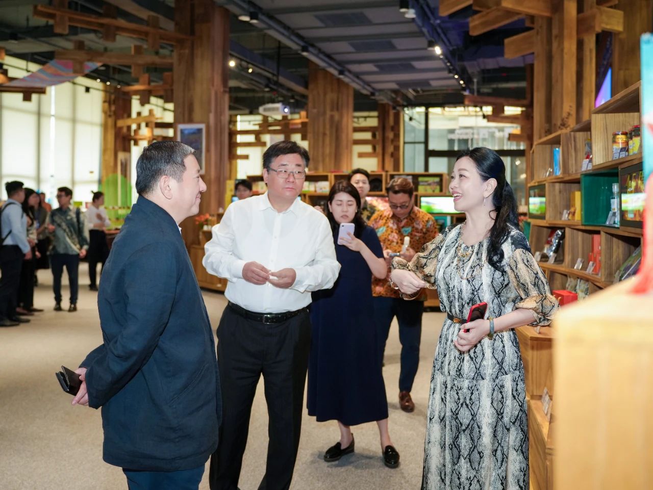 考察組步入廣西館,近距離感受“桂品好物”與本土文化。陳海泉大使意猶未盡,期待未來(lái)有更多的了解機會(huì )。