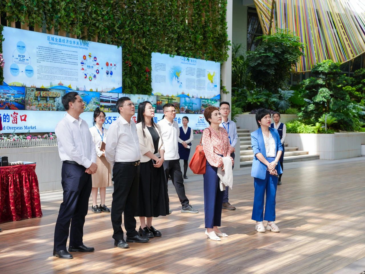 在匯聚中心參觀(guān)各主題展館的過(guò)程中,調研組詳細了解項目如何通過(guò)以“物”引“流”、以“物”促“流”的方式,搭建中國與東盟、RCEP其他區域國家乃至“一帶一路”沿線(xiàn)重要國家經(jīng)貿往來(lái)線(xiàn)上線(xiàn)下B2B、B2C一站式首選平臺,成為外國商家進(jìn)入中國市場(chǎng)的首站,以及中國商家拓展海外市場(chǎng)的窗口。