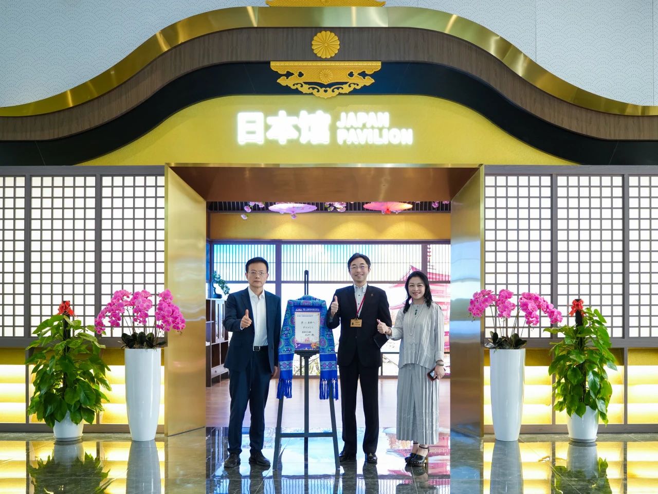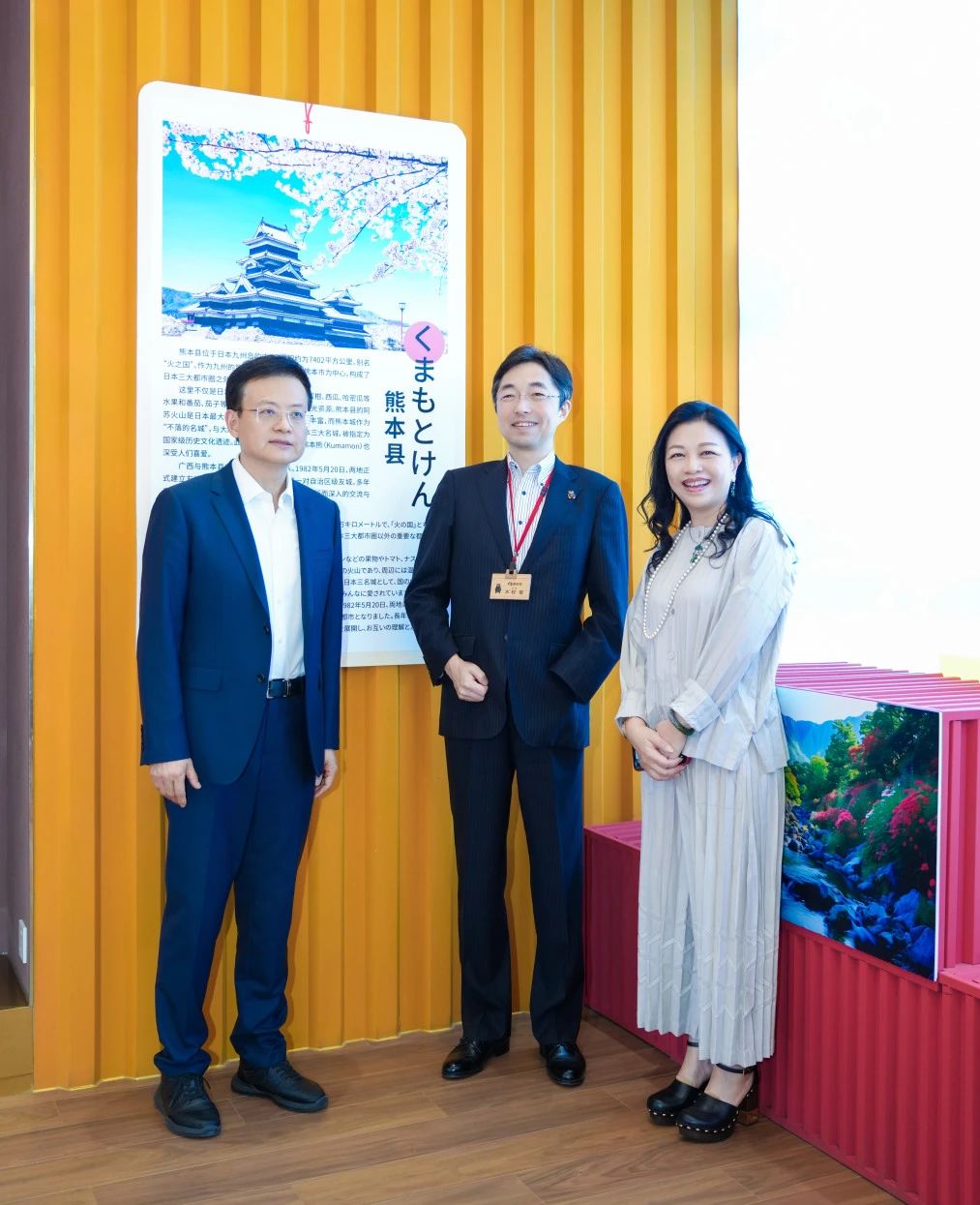 魏然主任(左)、木村敬知事(中)、趙海燕董事長(cháng)(右)在日本館合影
