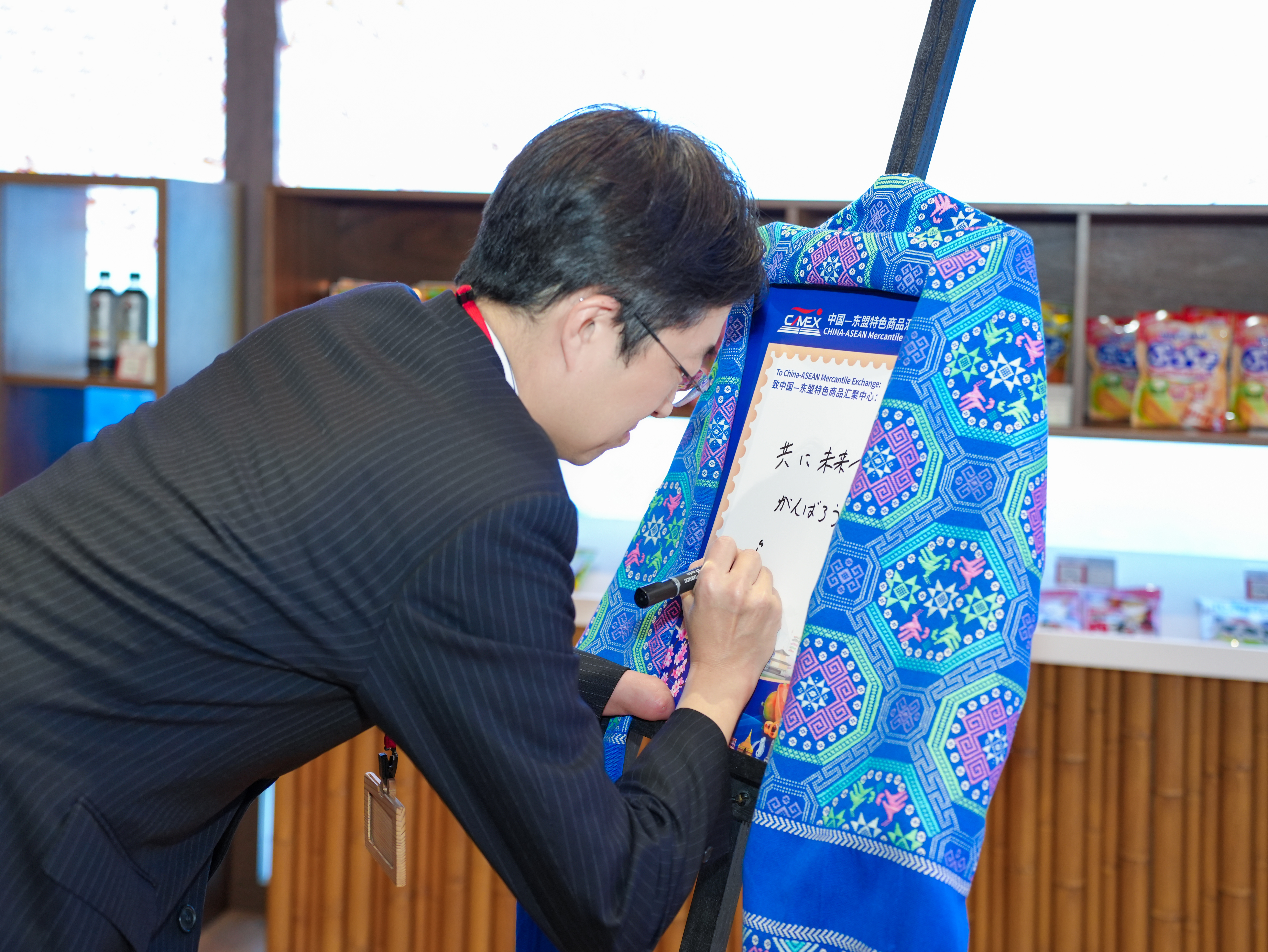 在日本館,雙方還就進(jìn)一步推動(dòng)日本尤其是熊本縣的產(chǎn)品通過(guò)匯聚中心更好地進(jìn)入廣西市場(chǎng)進(jìn)行了深入交流。