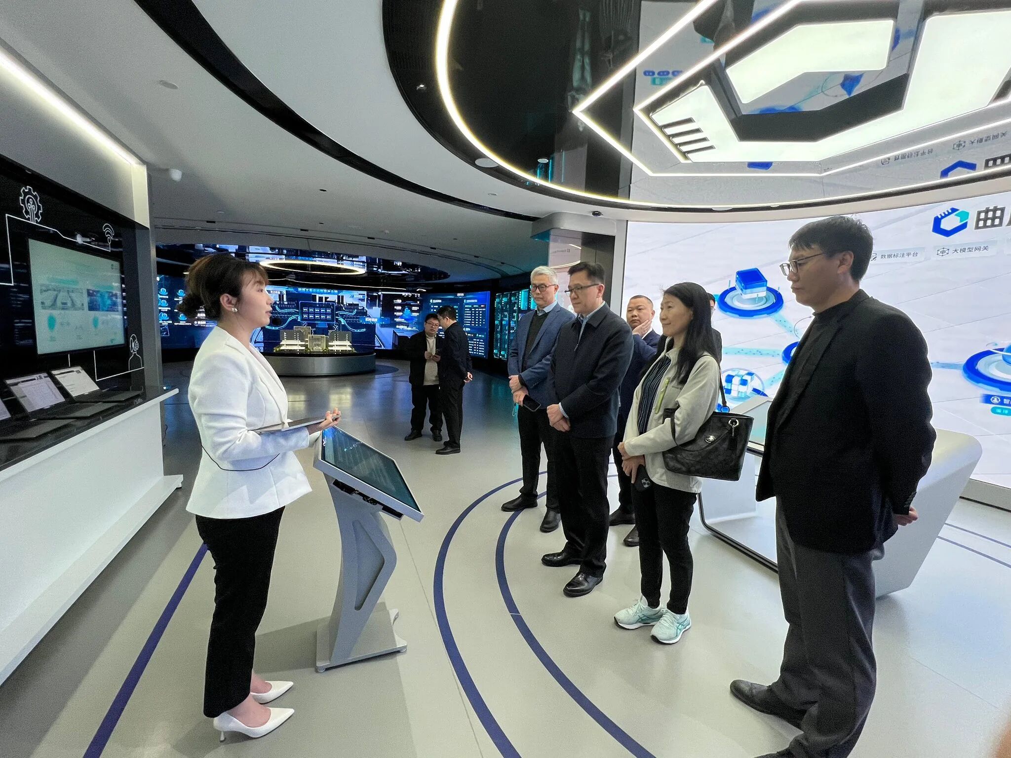 創(chuàng)新科技及工業(yè)局局長(zhǎng)孫東教授(左二)在廣西到訪中國(guó)—東盟地理信息小鎮(zhèn)。