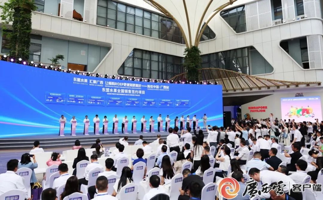 陳剛表示,廣西是中國面向東盟開(kāi)放合作的前沿和窗口,也是全國水果產(chǎn)量第一的省區和東盟水果進(jìn)入中國的“門(mén)戶(hù)樞紐”,號稱(chēng)全國的“果盤(pán)子”。舉辦此次活動(dòng),是落實(shí)習近平主席今年4月對有關(guān)東盟國家進(jìn)行國事訪(fǎng)問(wèn)成果,發(fā)揮廣西作為東盟水果及RCEP優(yōu)品進(jìn)入中國市場(chǎng)的首站及樞紐作用,推動(dòng)實(shí)現“東盟出產(chǎn)—廣西集散—中國暢銷(xiāo)”,助力深化拓展文旅推介、跨境電商等領(lǐng)域合作,加快區域經(jīng)濟一體化,服務(wù)構建更為緊密的中國—東盟命運共同體。廣西期盼與各方攜手,深化與東盟各國的水果經(jīng)貿合作,推進(jìn)基礎設施互聯(lián)互通,打造高效便利的進(jìn)出口通關(guān)服務(wù)體系,共同開(kāi)拓中國—東盟水果貿易市場(chǎng)空間;深化人工智能、數字經(jīng)濟領(lǐng)域交流合作,推動(dòng)人工智能在水果品種研發(fā)、種植等環(huán)節的運用,打造更多人工智能垂直應用場(chǎng)景,共同構建面向東盟的人工智能?chē)H合作高地;持續擴大對內對外開(kāi)放,統籌推進(jìn)沿邊臨港產(chǎn)業(yè)園區、欽防產(chǎn)業(yè)協(xié)作園區和中國—東盟產(chǎn)業(yè)合作區建設,進(jìn)一步深化拓展各領(lǐng)域務(wù)實(shí)合作,共同打造安全穩定的跨境產(chǎn)業(yè)鏈供應鏈。讓我們攜手并肩,以本次活動(dòng)為契機,把握時(shí)代機遇,將今日枝頭的鮮甜,釀成明日共贏(yíng)的瓊漿,讓“水果自由”的幸福感拉滿(mǎn)千家萬(wàn)戶(hù),共同書(shū)寫(xiě)RCEP合作新篇章。